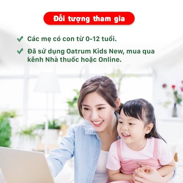 - Các mẹ có con từ 0-12 tuổi đã sử dụng Oatrum Kids New mua qua kênh Nhà thuốc hoặc kênh Online.